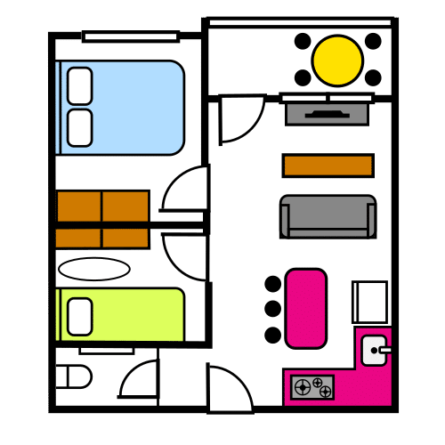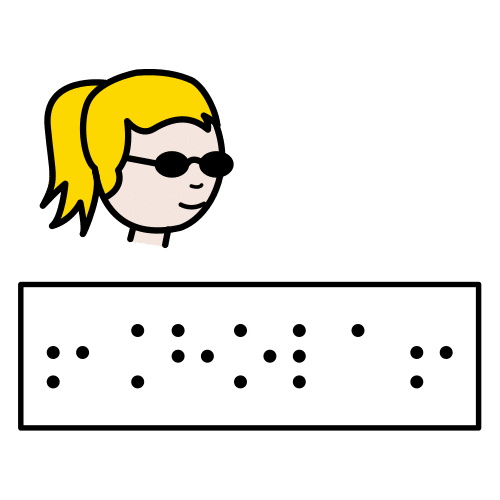 Drzwi do każdego pomieszczenia mają tabliczki z napisami w alfabecie Braille’a, czyli takie, które można odczytać dotykiem. Tabliczki te są umieszczone nad klamkami.